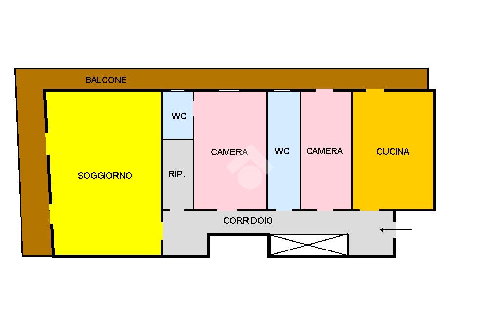 L'ingresso conduce ad un corridoio che disimpegna i vari ambienti.