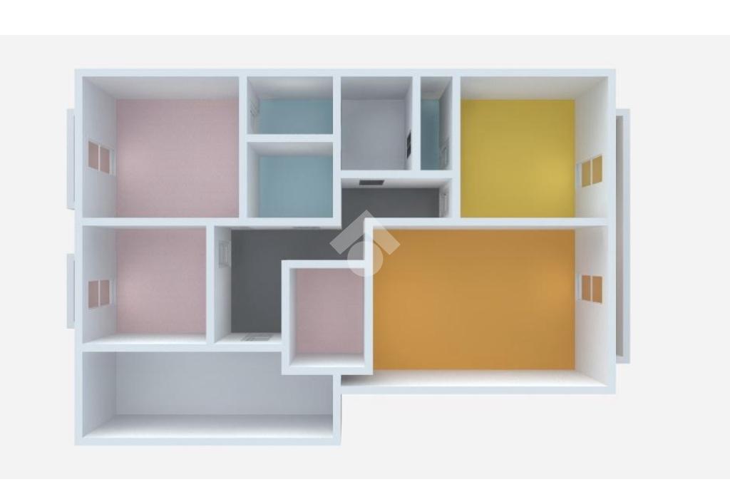 L'ingresso conduce direttamente su un corridoio che disimpegna i vari ambienti. E nello specifico troviamo un ampio soggiorno di 35 mq ca., due camere da letto matrimoniali, una cameretta e una cucina abitabile di 16 mq ca.