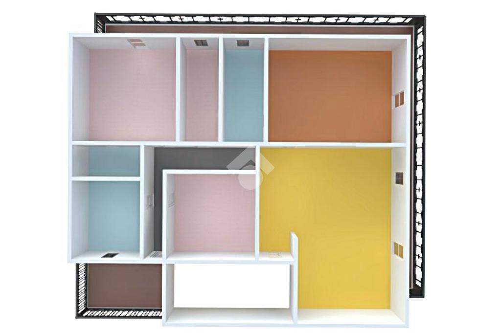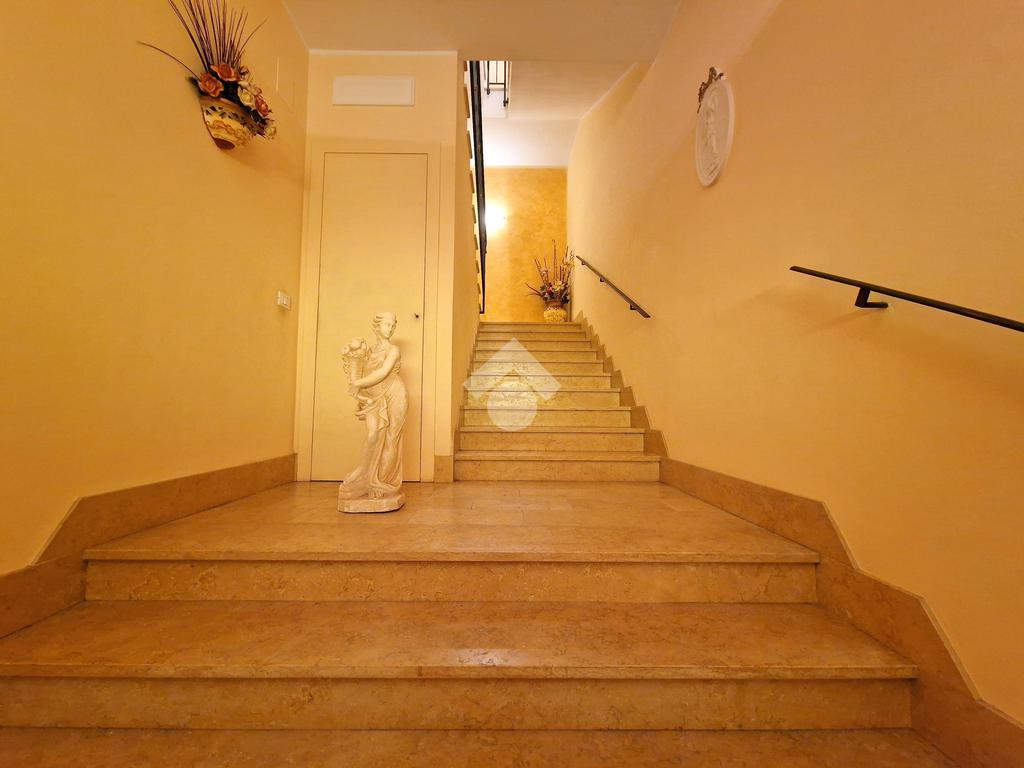 Gli ambienti risultano molto luminosi e ben arieggiati grazie alla doppia esposizione, e al fatto che tutte le stanze espongono su un ampio balcone angolare.