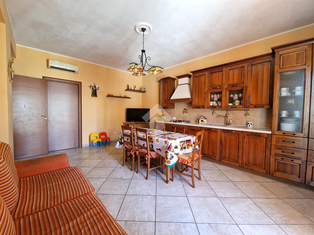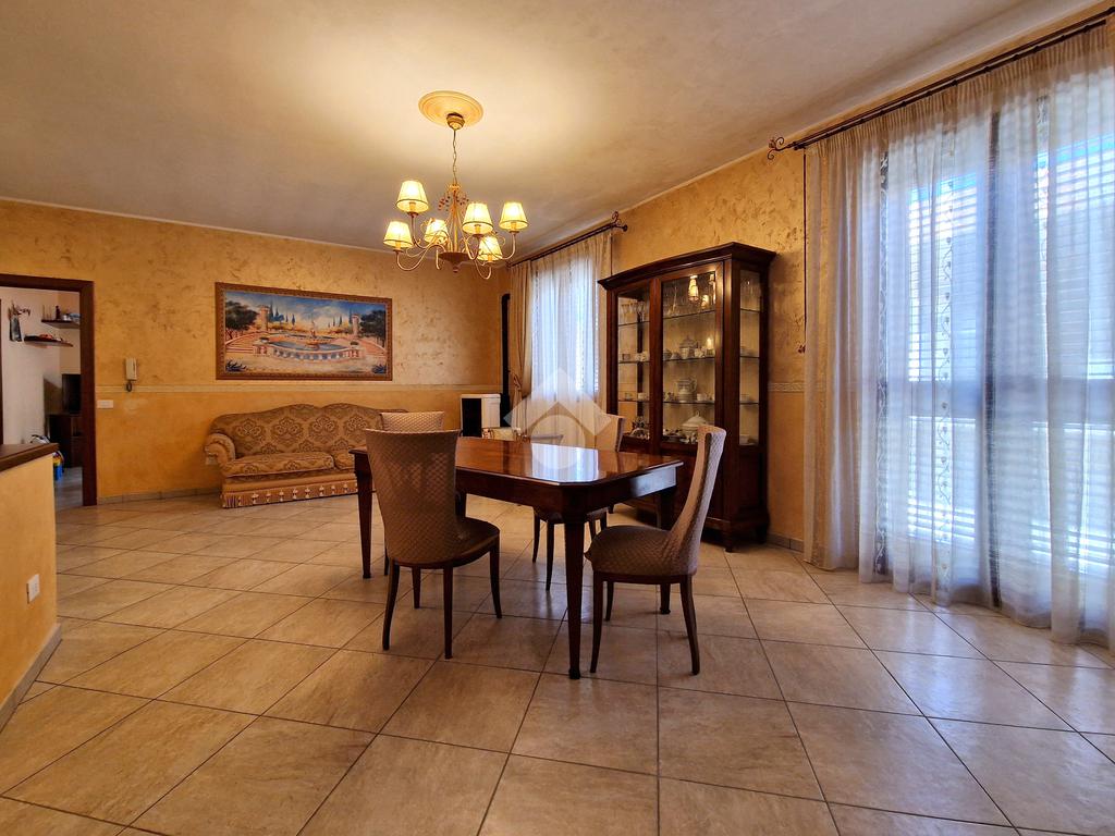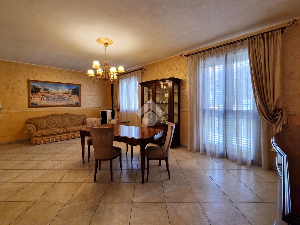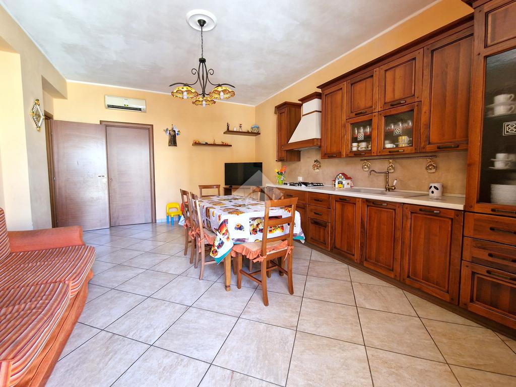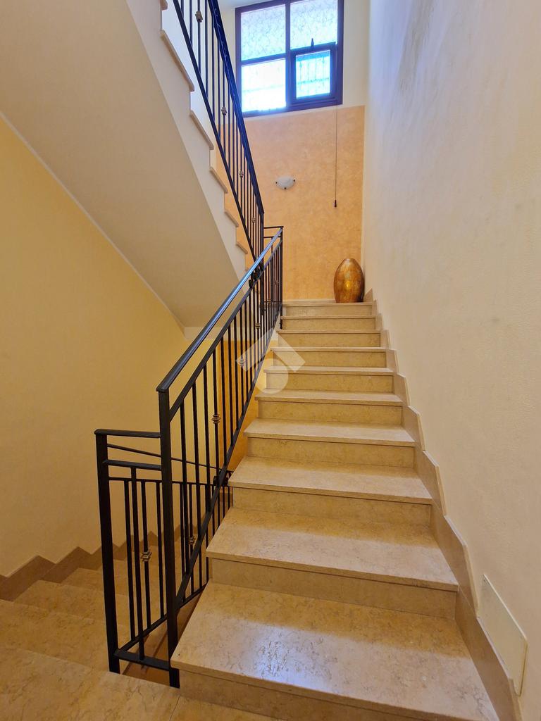L'ingresso conduce direttamente su un ampio soggiorno, adiacente a una cucina abitabile con annessa lavanderia. Il corridoio, invece, disimpegna una camera da letto matrimoniale con doppio servizio, due comode camerette, un bagno con vasca angolare e una veranda.