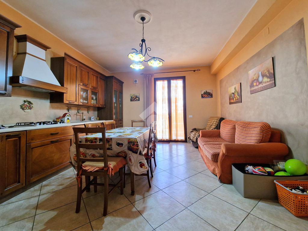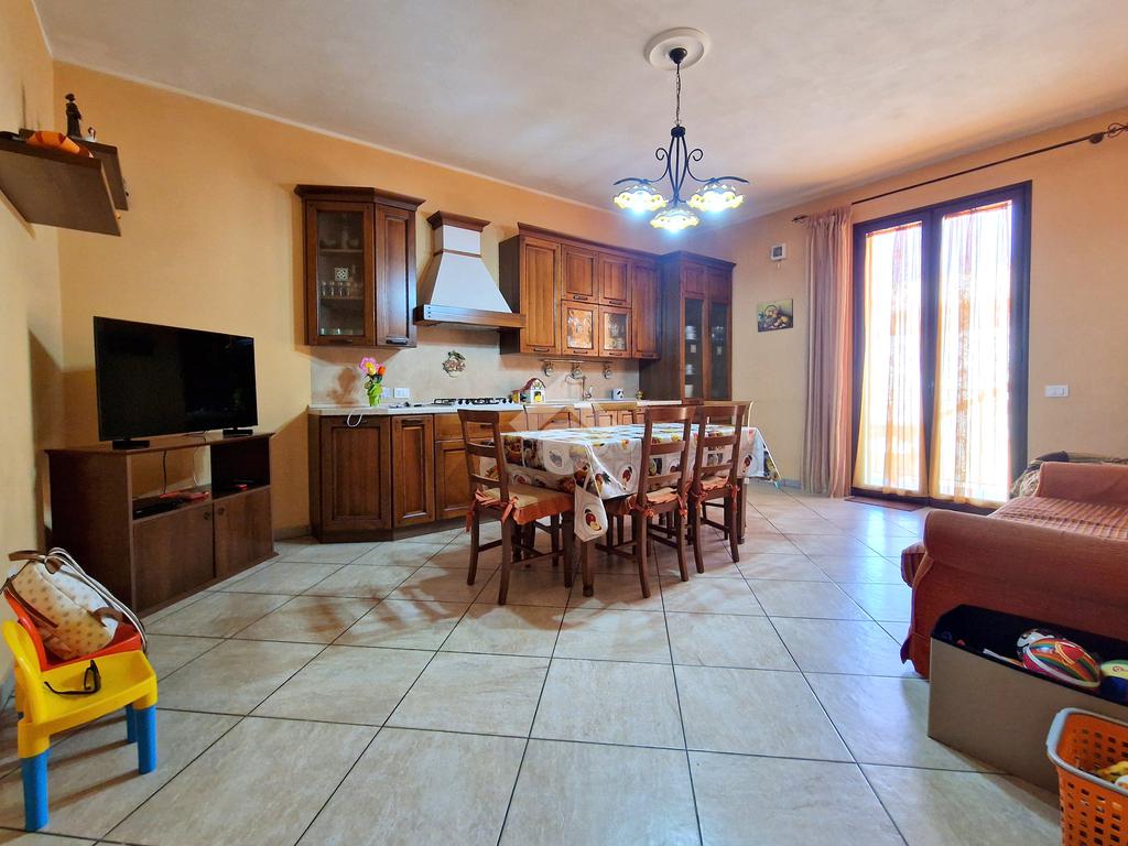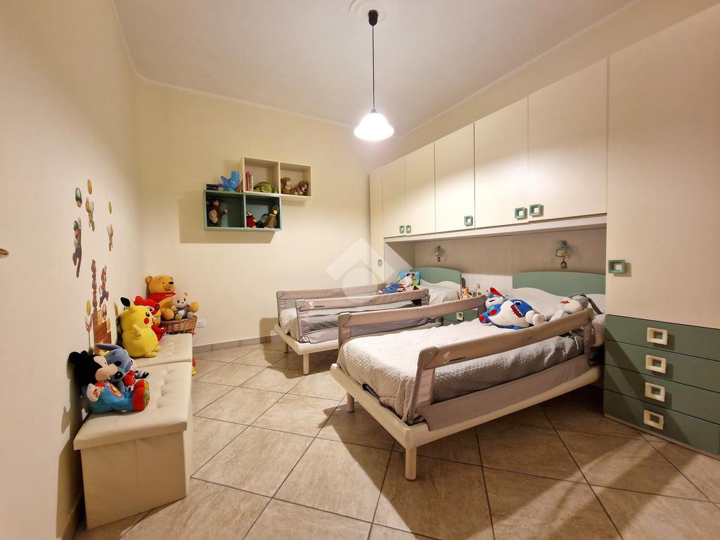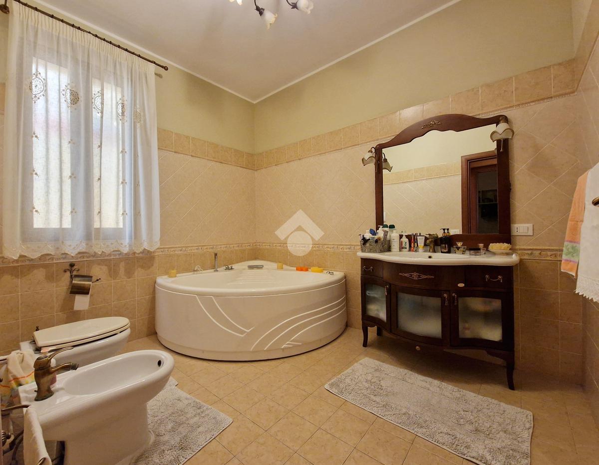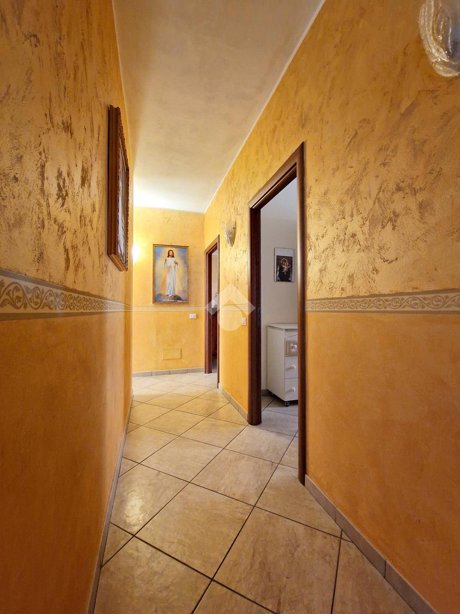 L'ingresso conduce direttamente su un ampio soggiorno, adiacente a una cucina abitabile con annessa lavanderia. Il corridoio, invece, disimpegna una camera da letto matrimoniale con doppio servizio, due comode camerette, un bagno con vasca angolare e una veranda.