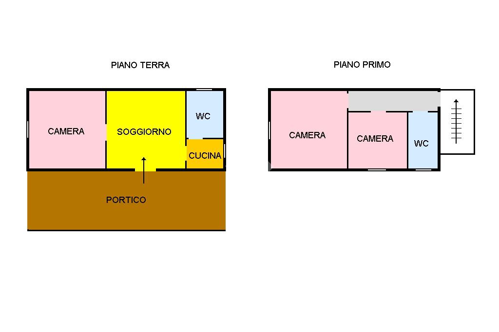 Invece, al piano primo, con accesso da scala esterna, sono presenti altre due camere da letto.