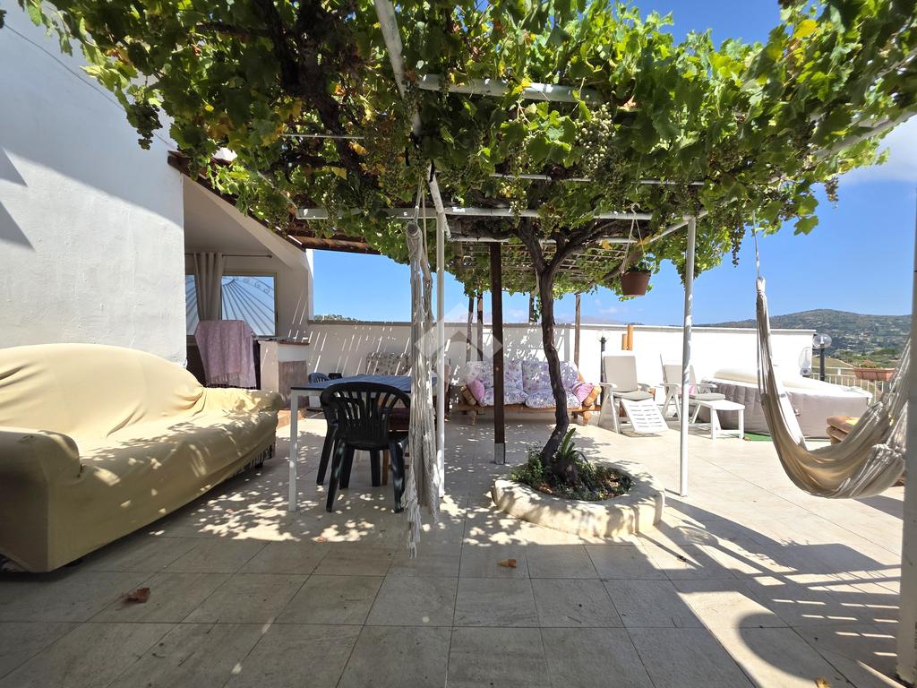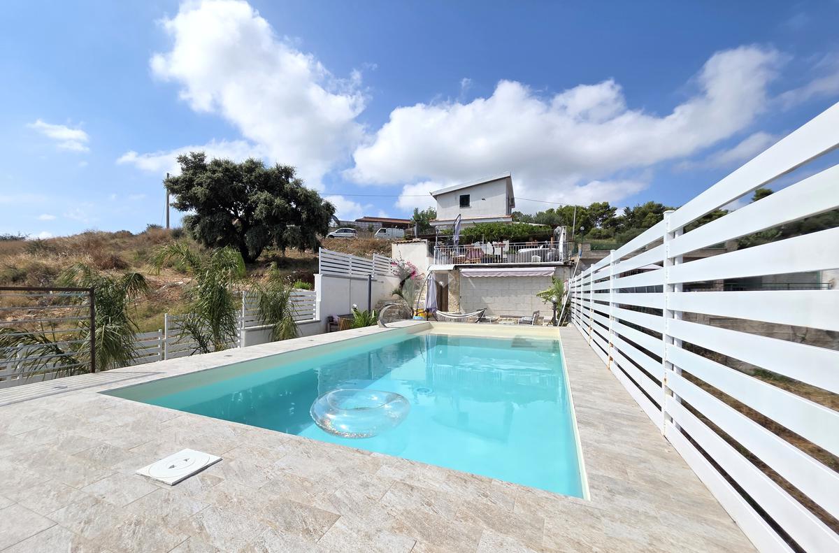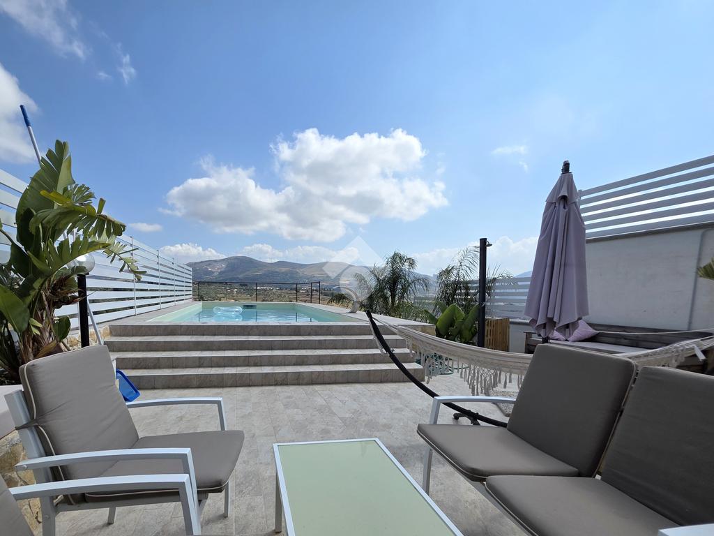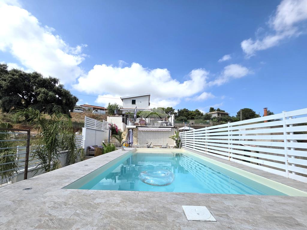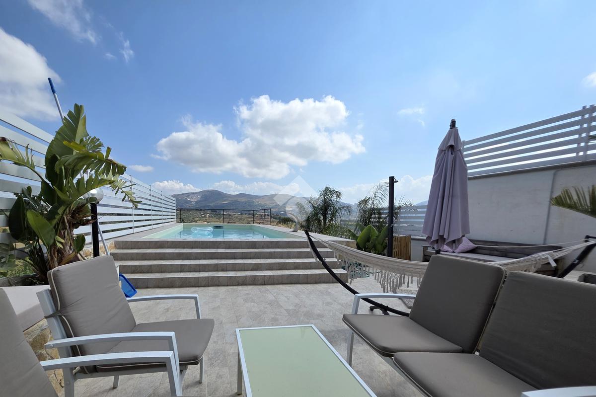 Caratteristica di rilievo dell'immobile è la presenza di un ampio spazio che circonda su tre lati l'immobile, adibito in parte a terrazzo e in parte a giardino, con cucina in muratura, barbecue e forno a legna, e una piscina dal design moderno.