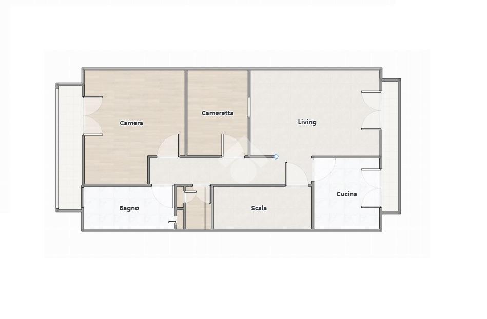 L'immobile è composto da ingresso direttamente su un'ampia zona living con adiacente una cucina abitabile, entrambi con accesso ad un comodo balcone che espone sul prospetto principale.