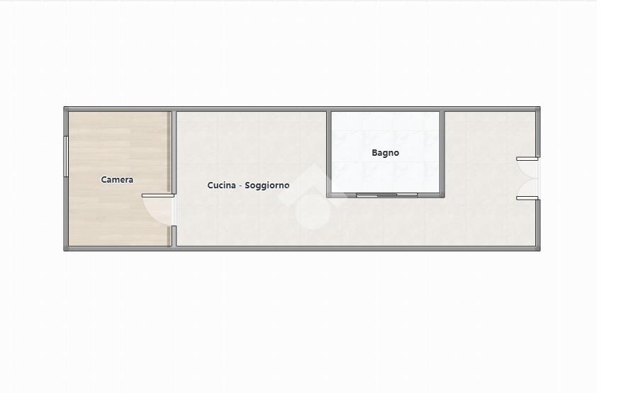 L'immobile è composto da ingresso, una cucina-soggiorno, una camera matrimoniale, un bagno con doccia e un ripostiglio.
