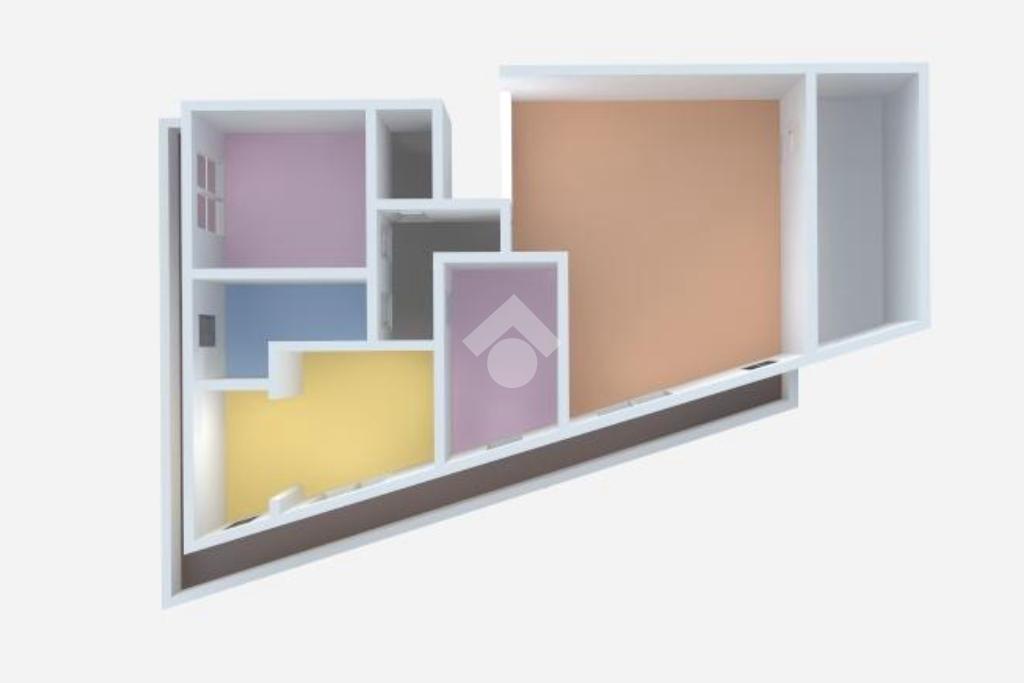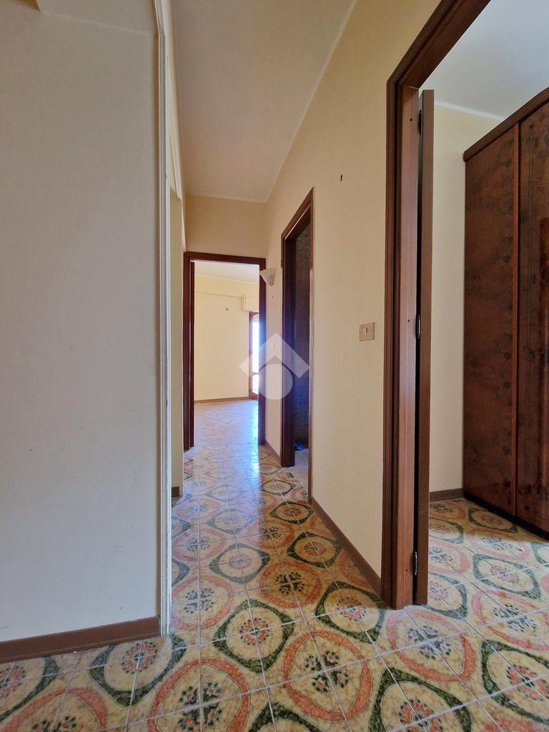 L'ingresso conduce direttamente ad un ampio e luminoso soggiorno con accesso ad un balcone che espone direttamente sul prosepetto principale. Dal soggiorno si accede ad un corridoio che disimpegna gli altri ambienti. Nello specifico troviamo una cucina abitabile, una camera da letto matrimoniale, una cameretta , un ripostiglio. Completa la soluzione la presenza di un bagno con vasca, che rende la soluzione ancora più confortevole per la famiglia.