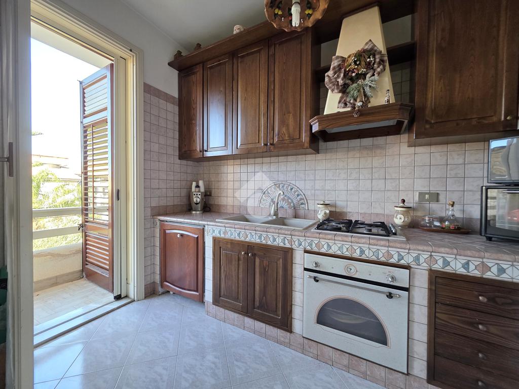 L'ingresso conduce direttamente su un ampio e comodo soggiorno, con adiacente la cucina, entrambi con accesso ad un primo balcone che espone direttamente sul prospetto principale.